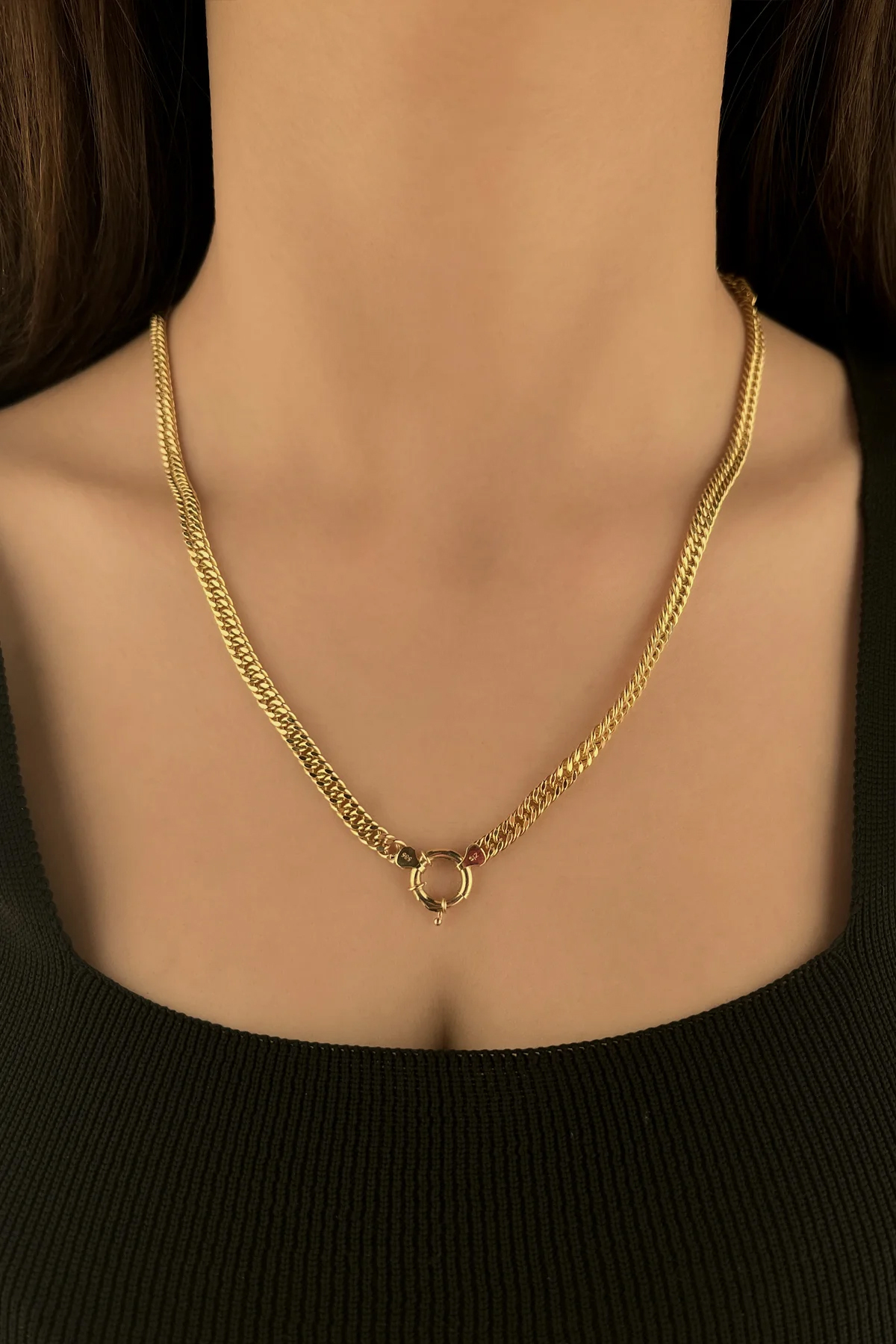 14 Ayar Altın Halka Doch Zincir Kirpik Uçlu Kolye