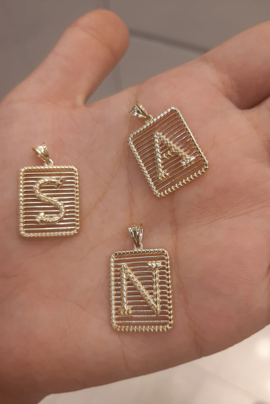 14 Ayar Altın Dikdörtgen Harf Kolye Ucu