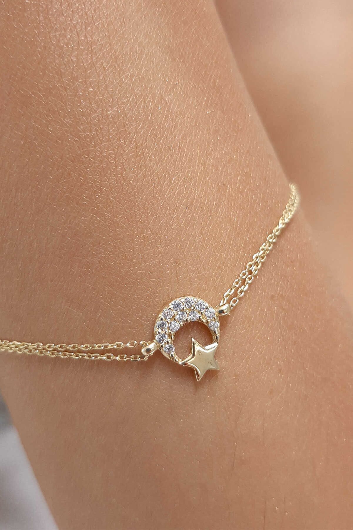 14 Ayar Altın Ay Yıldızlı Bileklik
