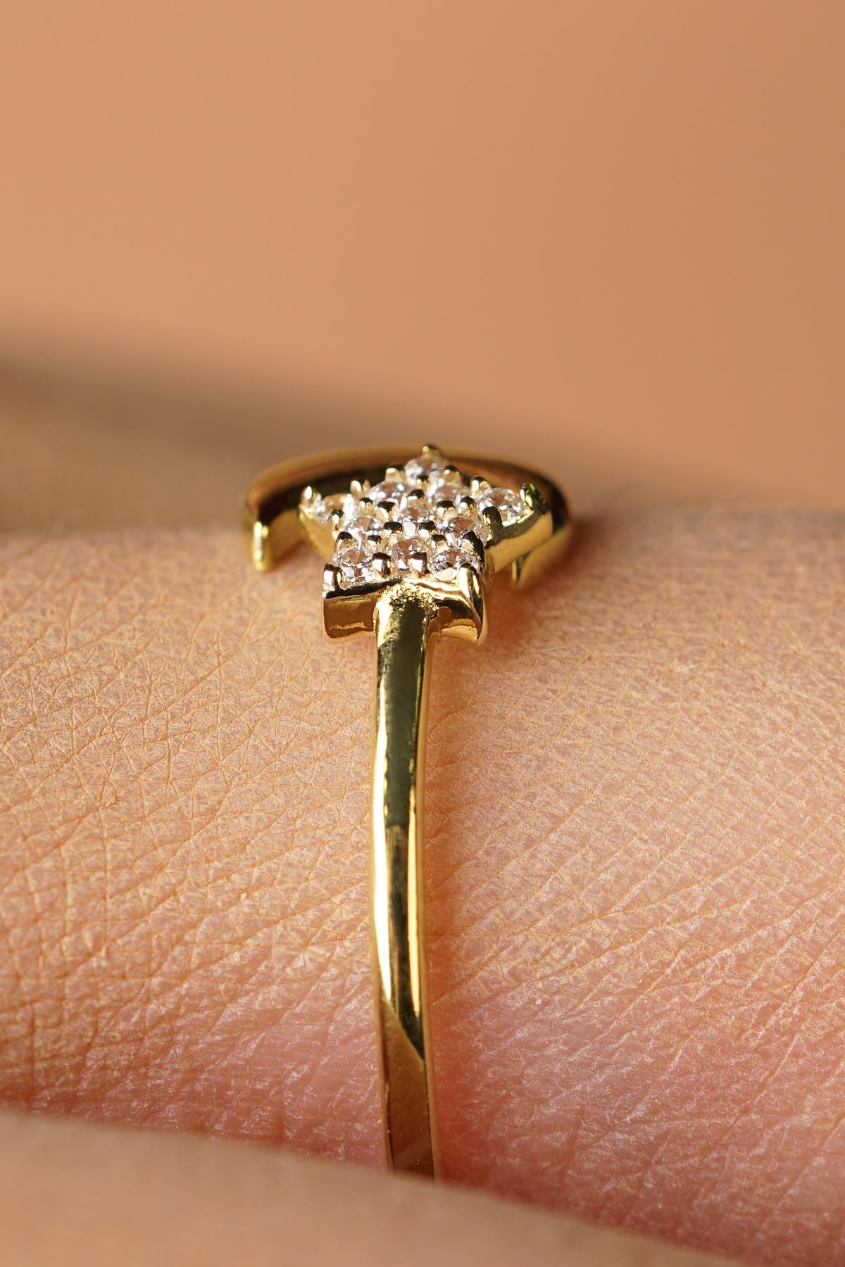 14 Ayar Altın Taş Detaylı Kutup Yıldızı Yüzük