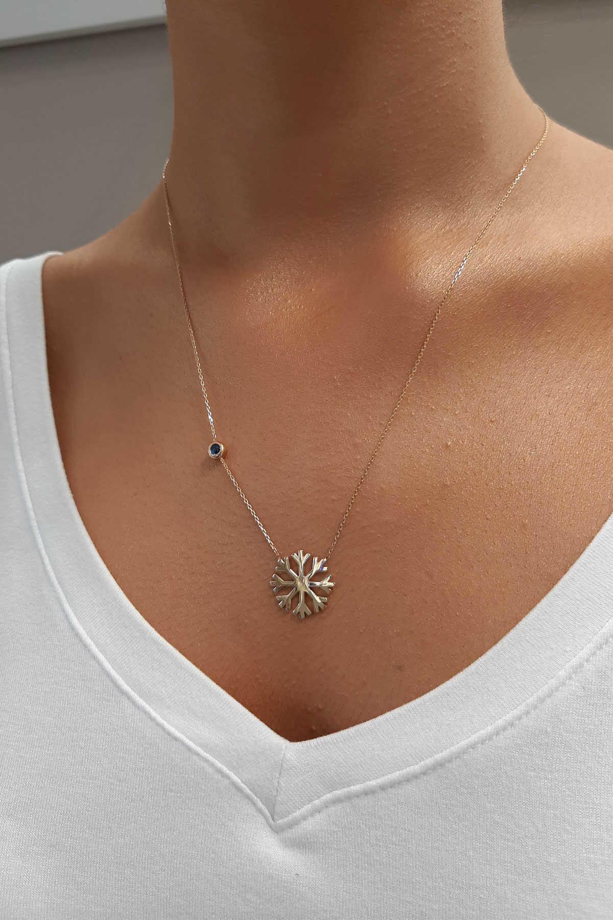 14 Ayar Altın Gözlü Kar Tanesi Kolye