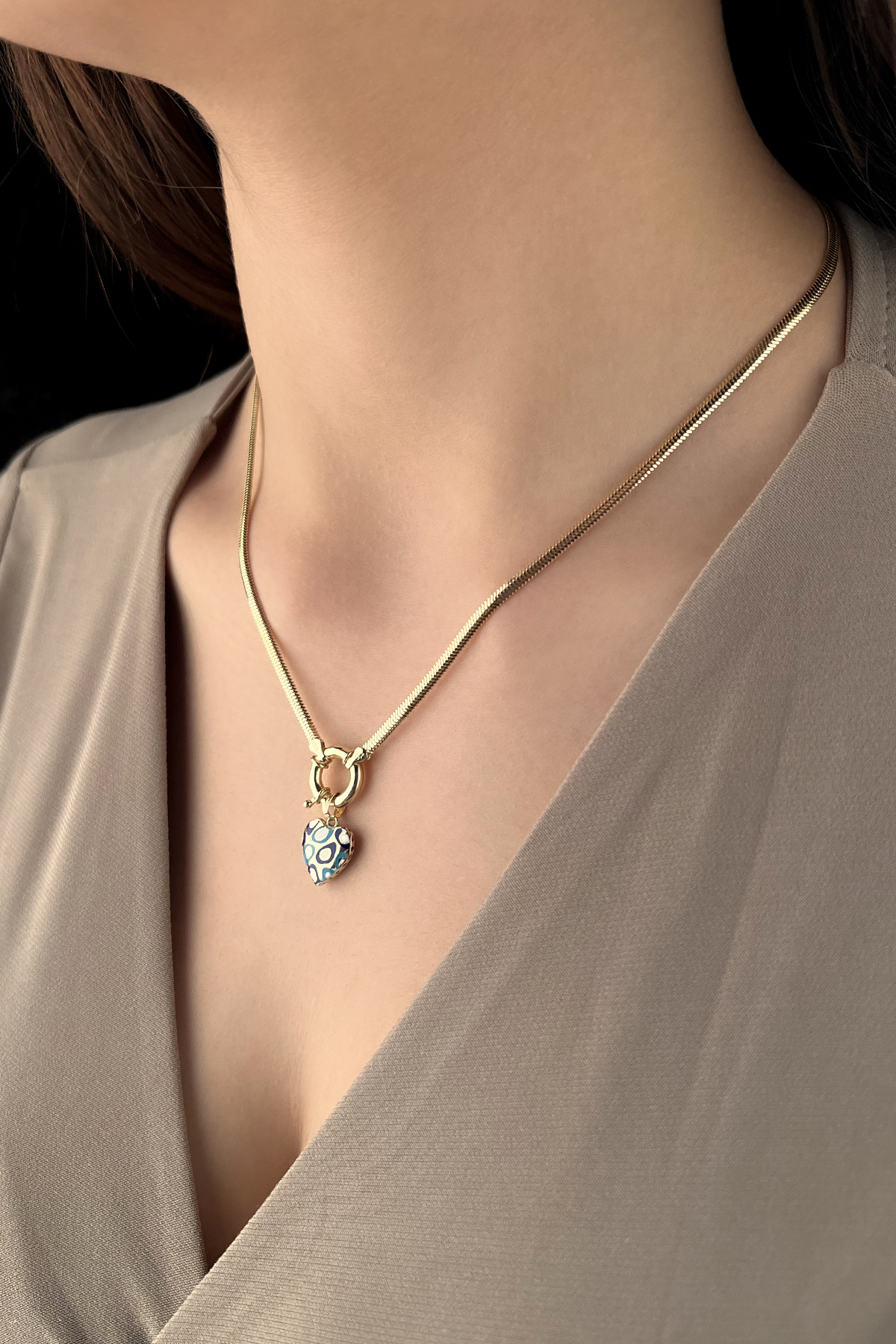 14 Ayar Altın Renkli Şişko Kalp Detaylı İtalyan Balık Sırtı Kolye