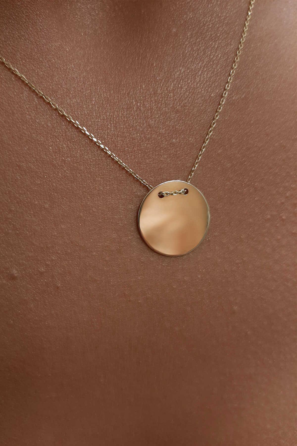14 Ayar Altın Oval Görünümlü Plaka Kolye