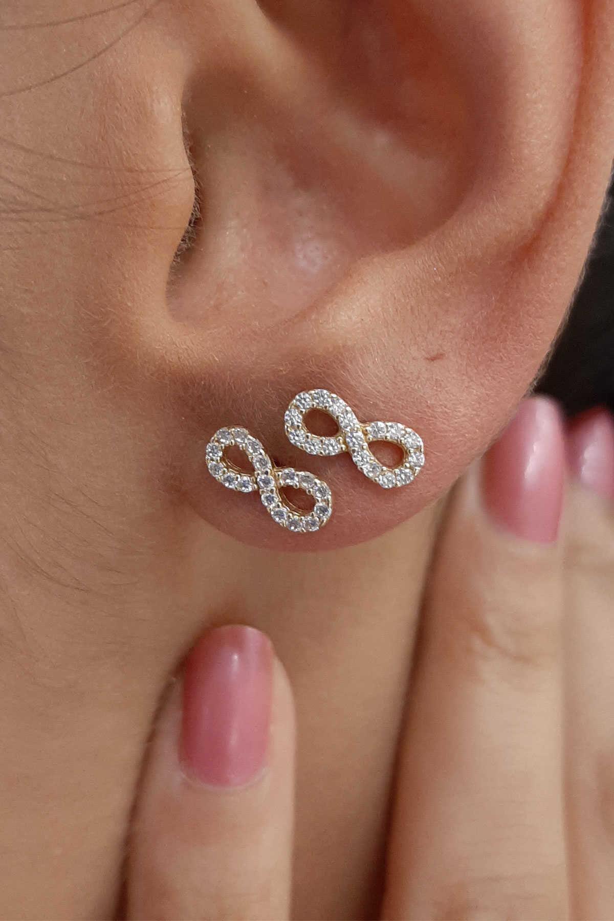 14 Ayar Altın Taşlı Sonsuzluk Küpe