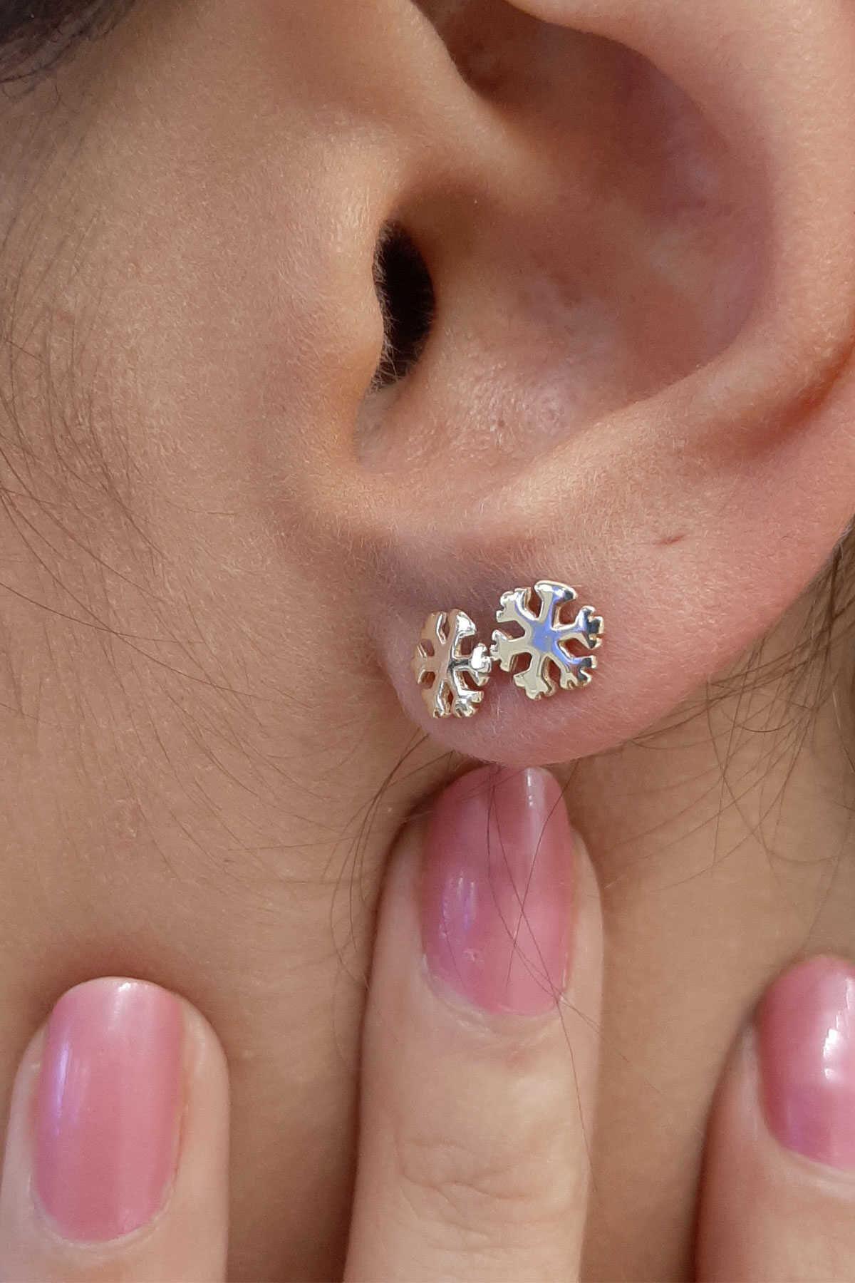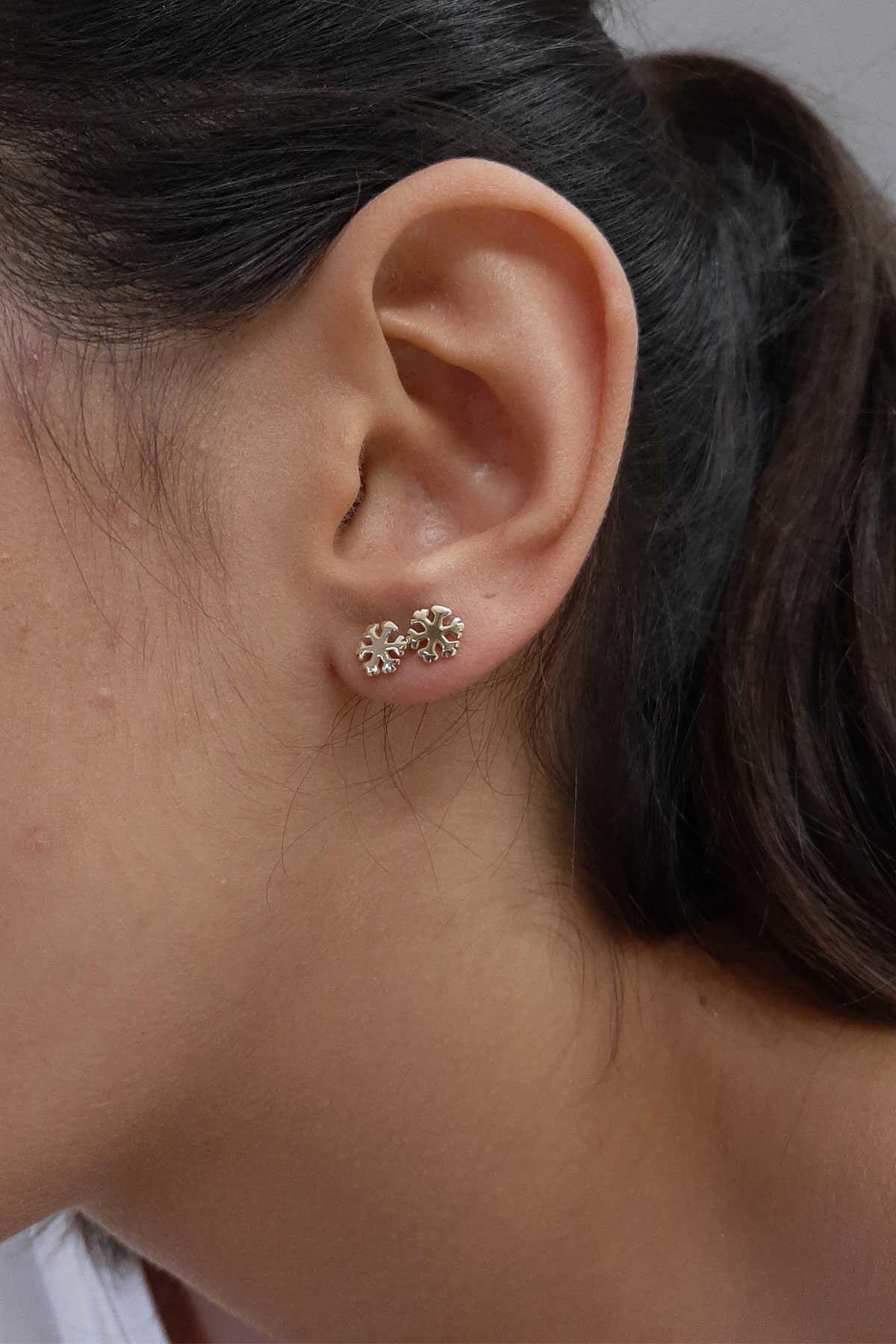 14 Ayar Altın Sade Kar Tanesi Küpe