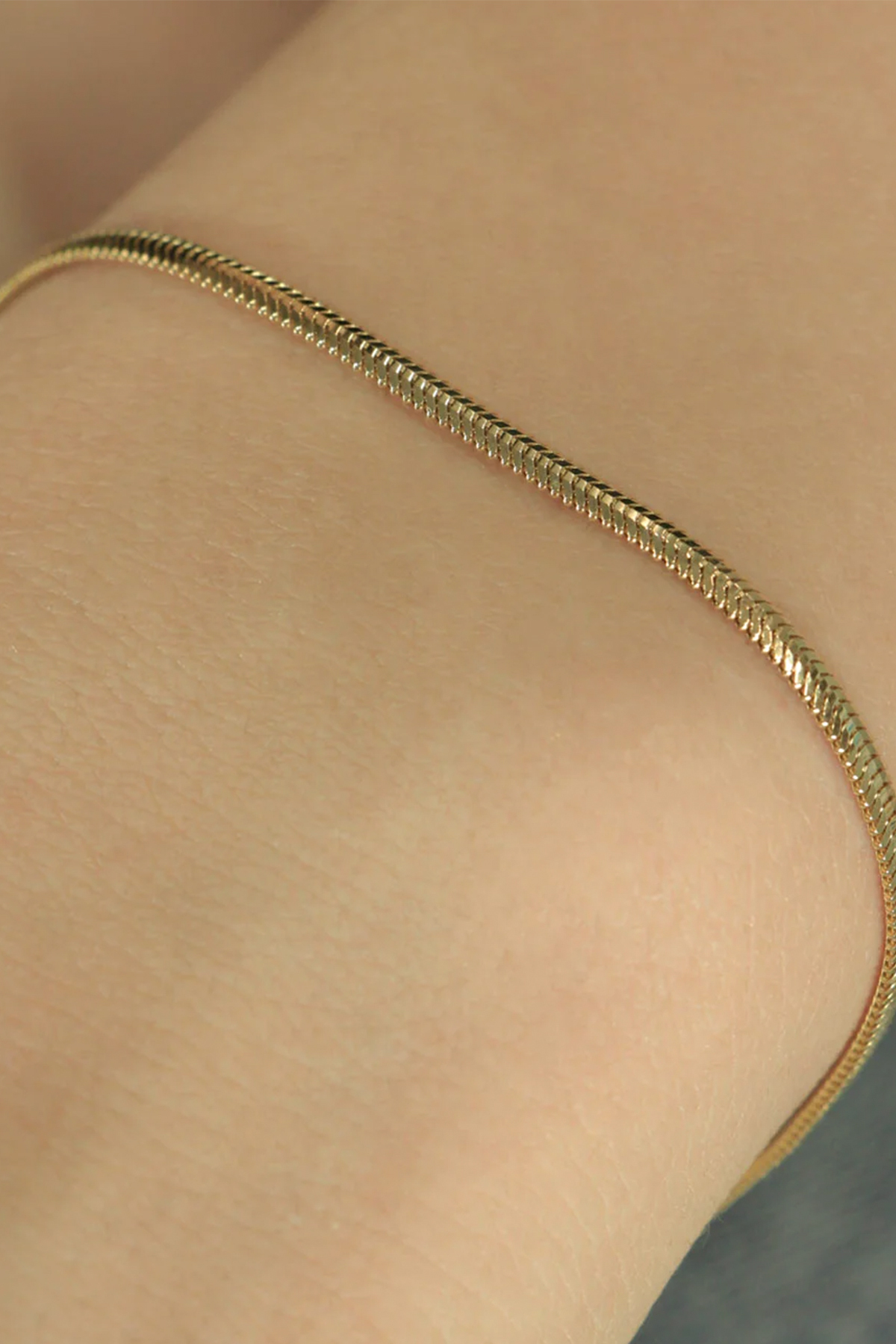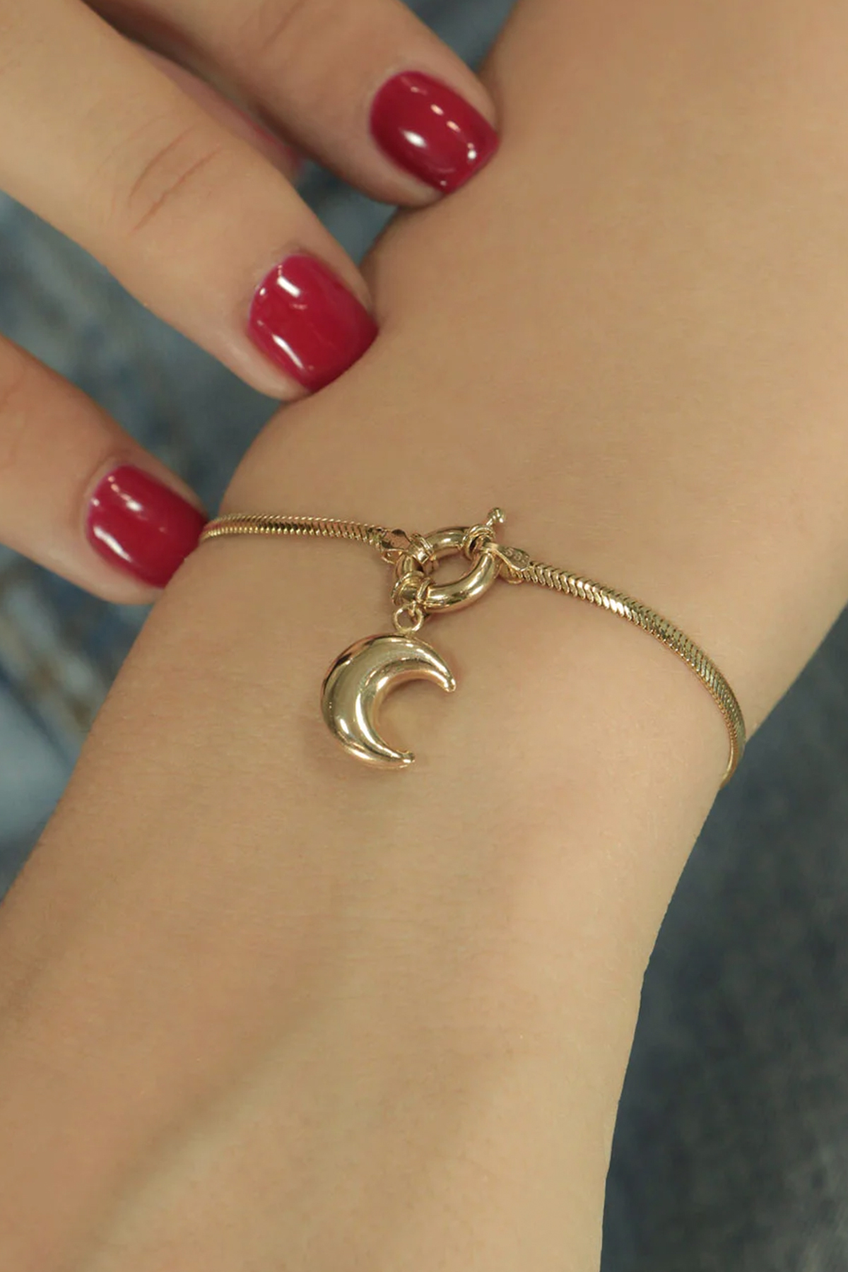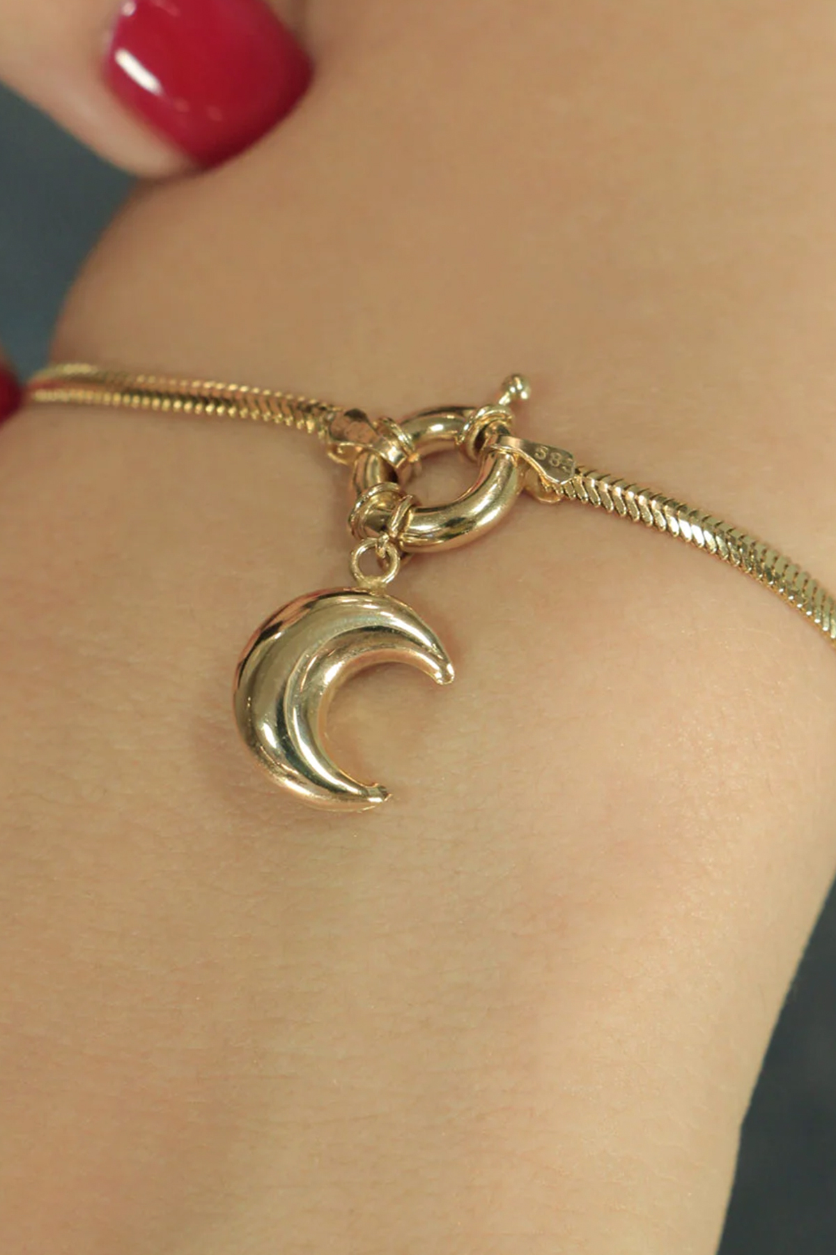 14 Ayar Altın Tombul Ay Detaylı Balıksırtı Bileklik