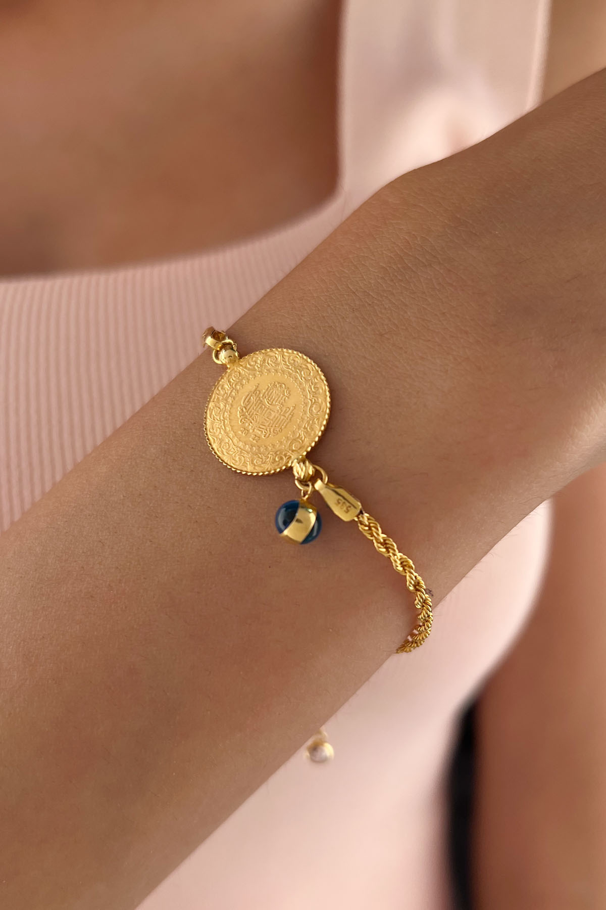 22 Ayar Yeni Çeyrekli 14 Ayar Altın Burgu Halat Zincir Bileklik