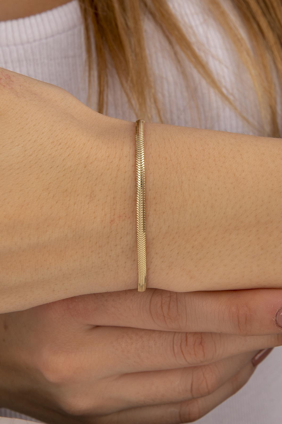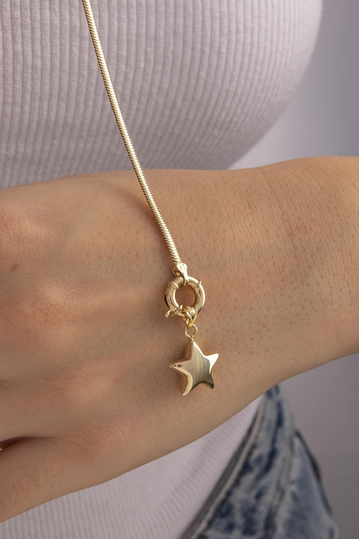 14 Ayar Altın Yıldız Detaylı İtalyan Balıksırtı Bileklik